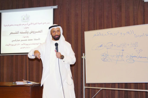 وقال مباركي خلال سلسلة دروسه عن «العروض وكنه الشعر» بأدبي المدينة المنورة إن هناك عبثا كبيرا في ساحة الشعر يجب أن نخلص الشعر منه، مؤكدا أنه ألحق كلمتي: «كنه الشعر» بكلمة العروض كي نعرف كنه الشعر الحقيقي من المزيف، مشيرا إلى أن الوطن العربي يوجد فيه أعداد لا تحصى من الشعراء إلا أنك إذا بحثت عن الشعر الحقيقي ربما لا تخرج إلا بخمسين شاعرا.