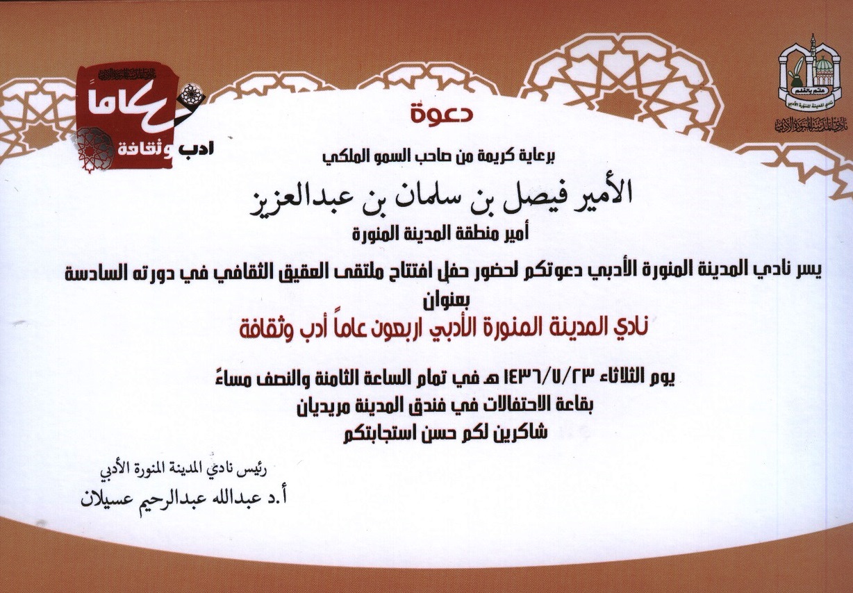 أدبي المدينة يدعو للكتابة في محاور ملتقى العقيق السادس دعا أدبي ...