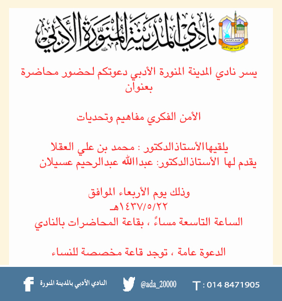 يقيم نادي المدينة المنورةالأدبي هذا المساء الأربعاء 1441/2/3هـ دورة بعنوان ...